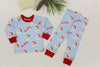 Our Light Blue Vintage Santa personalized pajamas for boys blend timeless holiday charm with cozy comfort. The cheerful Santa print brings back nostalgic Christmas memories while keeping your little one snug and stylish. Designed with soft cuffs and a gently fitted cut, these PJs run long so your child can enjoy them for more than one year. Each set can be personalized with his name, creating a keepsake that feels special year after year. Get matching sets, or pair them with our other timeless Holiday pajamas for adorable sibling sets. Perfect for Christmas Eve traditions, morning photos, or cozy nights by the tree.