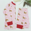 Made with safety in mind, our Holiday Golden Retriever PJs are completely CPSC compliant, providing peace of mind for parents. The gender-neutral design suits both boys and girls, making these baby holiday pajamas a versatile addition to any child's sleepwear collection. Plus, with matching family pajamas available, everyone can celebrate together in style.