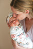 Our personalized baby swaddle offers a soft pink floral design on premium baby fabric, providing a cozy and secure wrap that soothes newborns and supports restful sleep. This stretchy swaddle wrap measures 42" x 38", ideal for swaddling, tummy time, and capturing newborn milestone moments with ease. Crafted from buttery-soft, breathable material, it ensures gentle comfort for delicate skin while being machine washable for everyday convenience. Personalize this custom baby blanket with your little one’s name to create a unique heirloom baby blanket that doubles as a heartfelt newborn personalized gift.