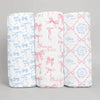 The Coquette Bows Sleep Saver Swaddle 3-Pack for Girls offers premium baby swaddle blankets designed to provide comfort and promote restful sleep. This newborn swaddle set features heirloom bow swaddles in delicate blue and pink bows, combining softness with style for a charming addition to your baby's nursery. Crafted from stretchy baby wrap fabric, these soft swaddle blankets ensure a snug fit that reduces baby fussiness and supports longer naps.